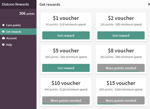 Clearly, the points showed on the right of Diatone Rewards ...